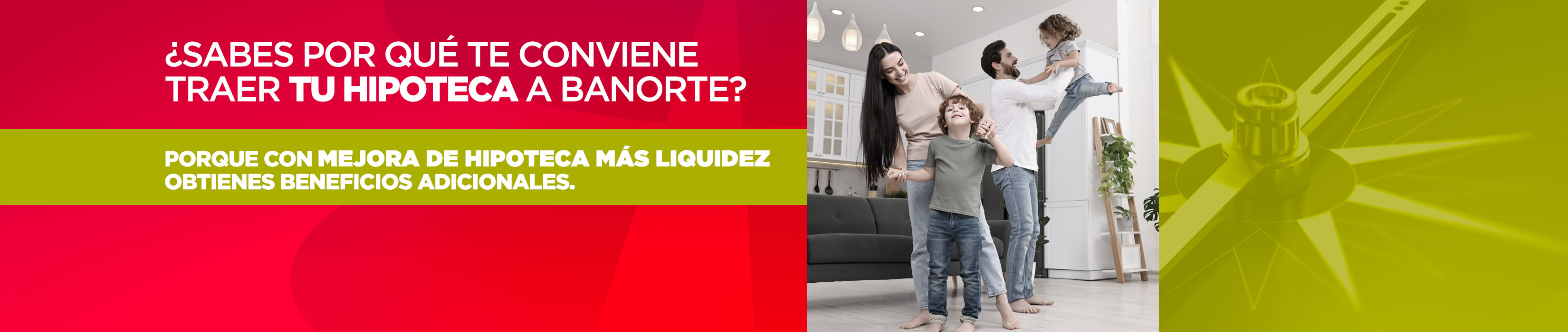 CAT PROMEDIO 13.3% sin I.V.A. Para fines informativos y de comparación. Calculado al 04/11/2025. Vigente al 04/05/2026. CAT PROMEDIO (Costo Anual Total) correspondientes a los créditos otorgados para el Producto de Mejora más Liquidez en Mejora de Hipoteca. Es tu derecho solicitar la oferta vinculante para comparar distintas opciones de crédito. Sujeto a aprobación de crédito. Aplican restricciones. Producto operado por Banco Mercantil del Norte, S.A., Institución de Banca Múltiple, Grupo Financiero Banorte.