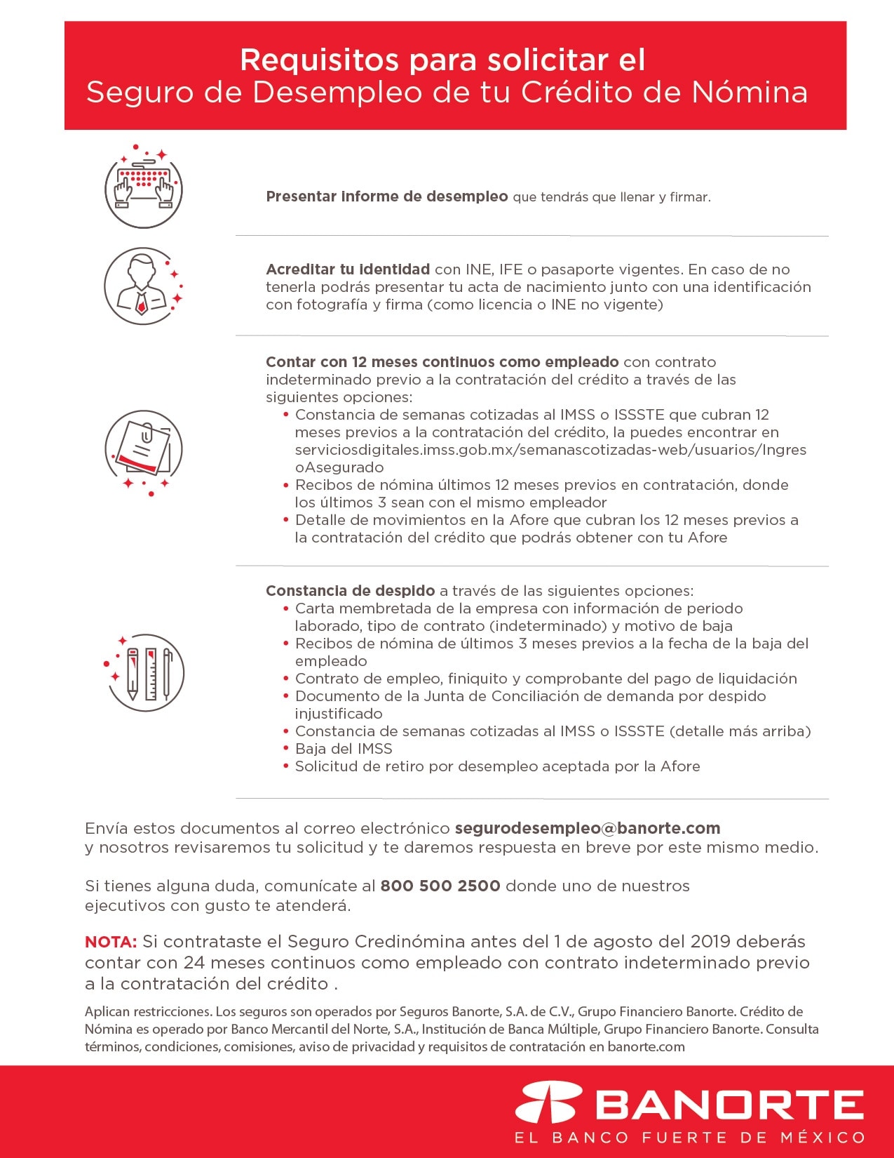 NOTA: si contrataste el Seguro Credinómina antes del 1 ° de agosto de 2019, deberás contar con 24 meses continuos como empleado con contrato indeterminado previo a la contratación del crédito.